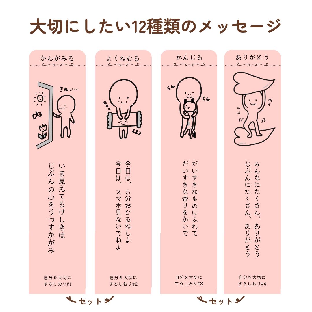 自分を大切にするメッセージが入った、桃色のしおりです。